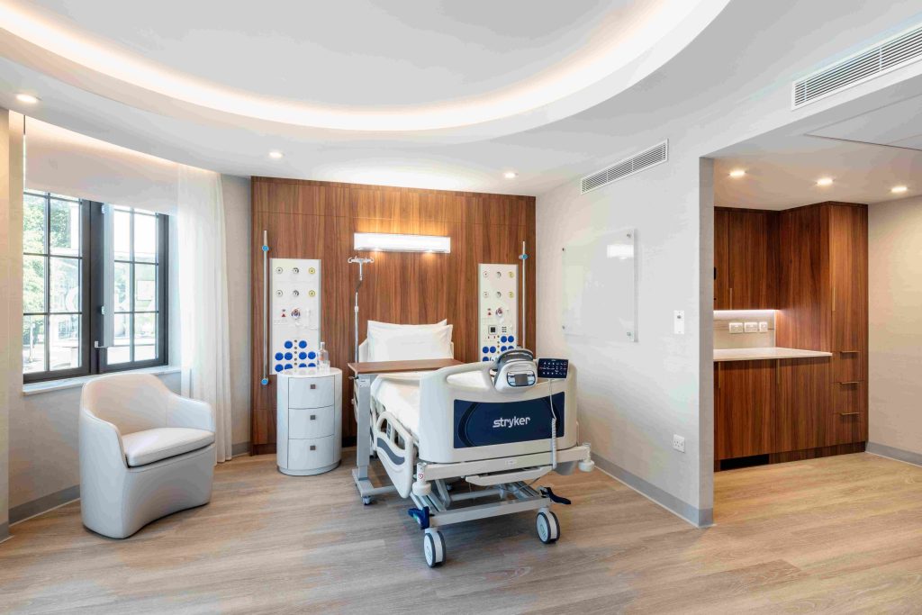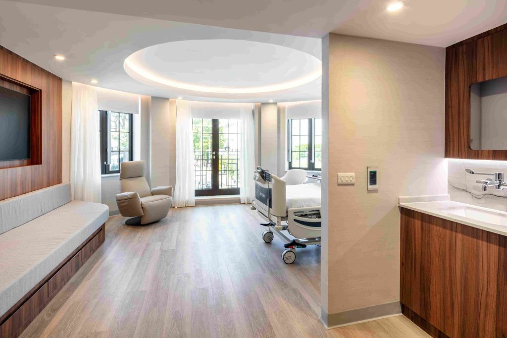 A key focus was ensuring that bedroom suites are flexible, generous in size and filled with natural daylight. Patients can also welcome family and friends within the rooms, with dedicated lounge areas to offer a comfortable environment for visitors, including a banquette seat that can double as a bed to provide for overnight stay.